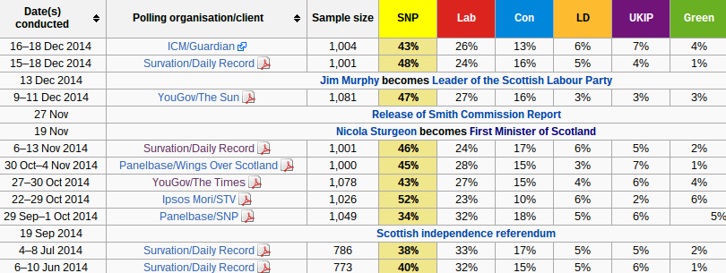 Some might ask why the SNP were wasting money on polling for the GE2015 when others were doing it for them as the table shows.